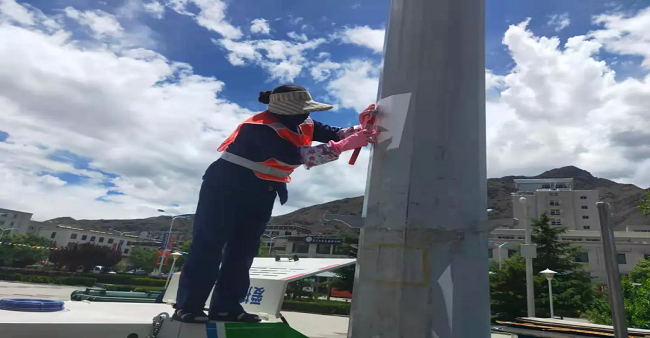 同時(shí),山南分公司還調(diào)配了15名員工、1輛高壓沖洗車、1輛灑水車、1輛洗掃車、1輛多功能沖洗車組成了體育場臨時(shí)清洗隊(duì),對(duì)體育場垃圾桶、電樁小廣告、周邊雜草以及地面等進(jìn)行了集中清理,通過采取高壓水槍沖洗和人工擦拭相結(jié)合的方式,體育場周圍環(huán)境及設(shè)施煥然一新,顯露“本色”。